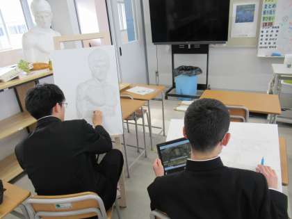 デッサン中の部員もいます。それぞれのジャンルで頑張っています。