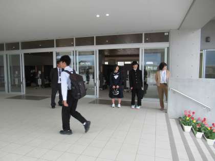 生徒会執行部の2名が自主的に玄関前で挨拶運動をしています。素敵です。