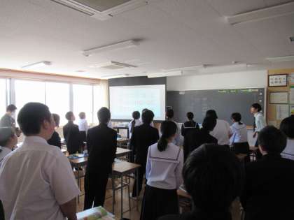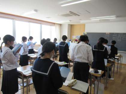 写真上は、国語の授業の様子です。「朝のリレー」を音読中です。
