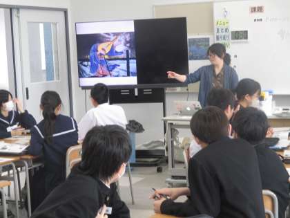 「想像の生物をつくる」という単元で、妖怪について学習しています。水木しげる先生が作った妖怪について、名前や特徴についてみんなで考えています。