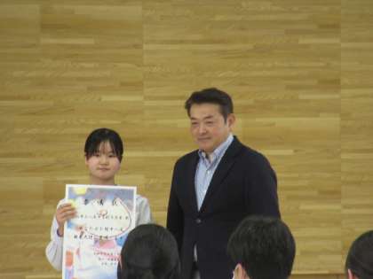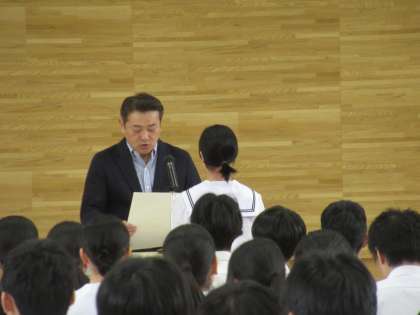 観光協会会長様から直々に「越中八尾観光大使」として3年生全員が委嘱されました。