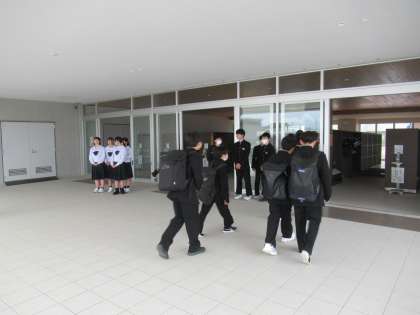 生徒玄関前は、ボランティアが、一人、二人、三人と増えて、最終的にはたくさんの2年生が挨拶運動を展開しました。