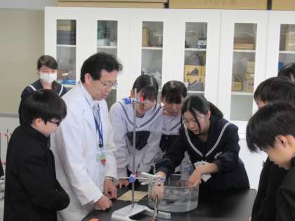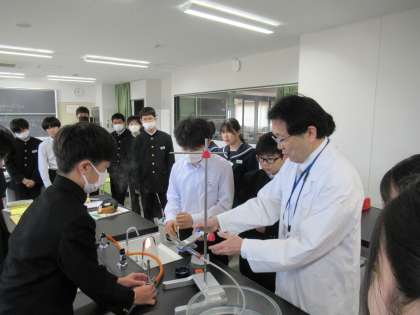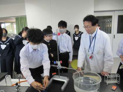「炭酸水素ナトリウムを加熱するとどのような変化があるか」という課題の下、実験をしています。
