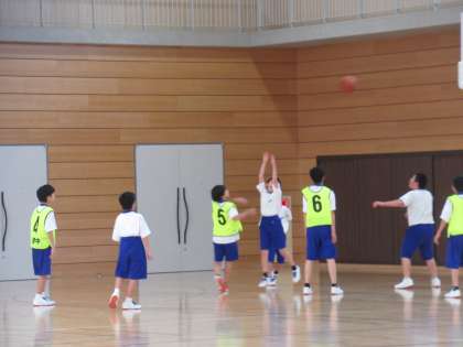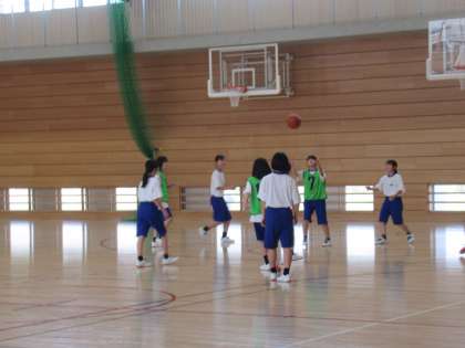 男女に分かれて、試合形式で行っています。
