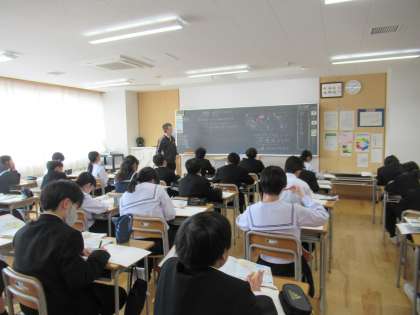 写真下は、社会の授業の様子です。世界を様々な観点から分けています。