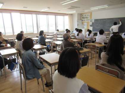 教室内に着席し、生徒と一緒に授業を受けてくださった保護者も。