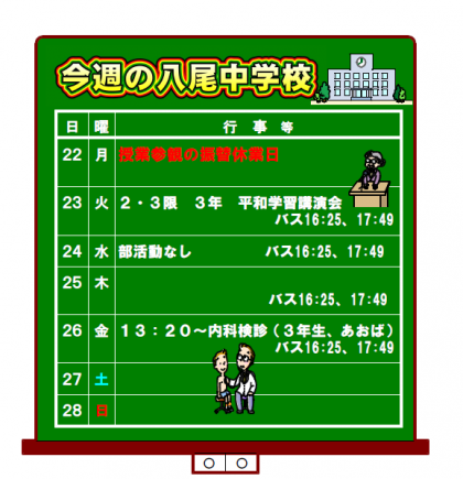 4月20日(土) 今週の八尾中学校