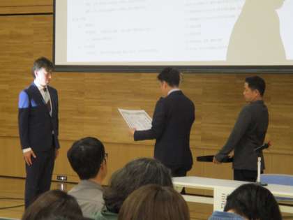 最後に、長年にわたり、PTA活動にご尽力いただいた方に「市P連」より感謝状が贈られました。昨年度のPTA会長 福井様が代表で受けとられました。