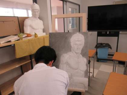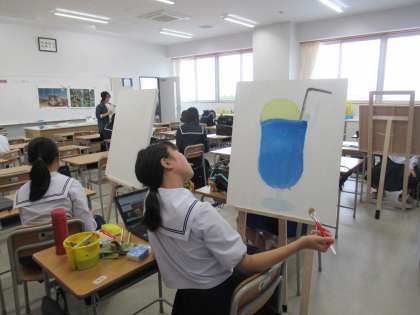 美術部の様子です。大きなキャンバスに絵を描いています。