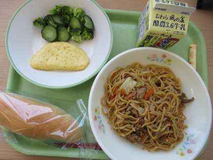 給食の焼きそばは、麺がやわらかく、美味しいですね。