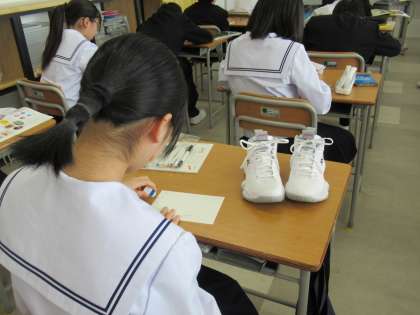 それぞれ家から持ってきた「お気に入りのもの」を机上に置き、よく見ながらデッサンしています。シューズ、マスコット、、、等様々なお宝が机上にあります。
