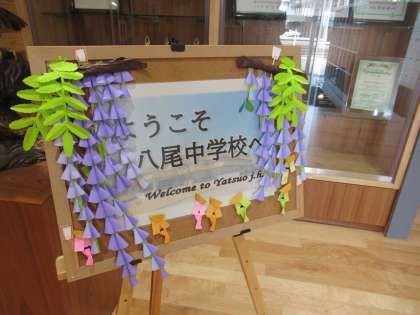 ウエルカムボードがバージョンアップ、レベルアップしています。藤の花がとても美しいですね。