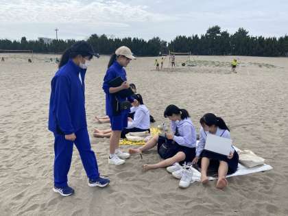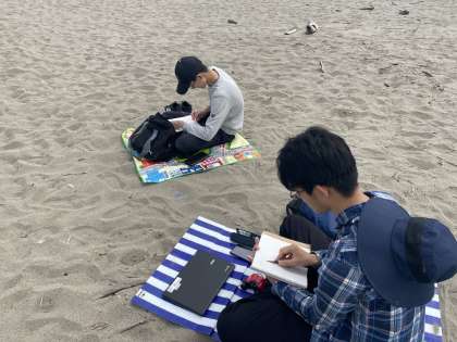 「海の絵画コンクール」に向けて、岩瀬浜へスケッチに来ています。