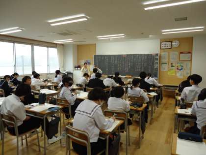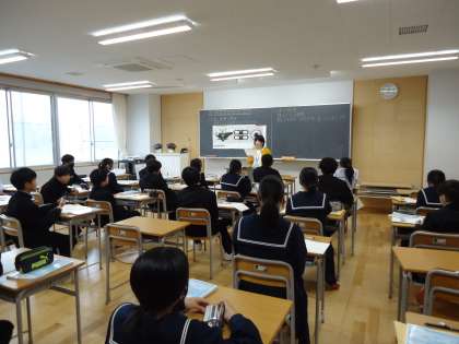 写真上は、理科の授業の様子です。「花の断面はどうなっているの?」という課題で、植物の観察を基に学習を進めています。