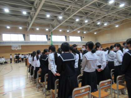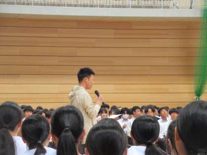 最後に、生徒会担当の先生から、1年生は中学校で初めての生徒会活動として、先輩の姿を見て、精一杯取り組んでほしい、2年生は10月からは自分たちが中心になっていくのだという想いをもって、3年生の姿を見ながら取り組んでほしい、そして、3年生は3年間の集大成として「本物」を目指して取り組んでほしいと話しました。