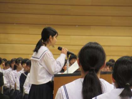 一人一人が、自分にできることを行い、積極的に活動に取り組むことでよりよい八尾中学校をつくっていこうと生徒会副会長が終わりの言葉で述べました。