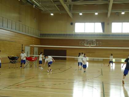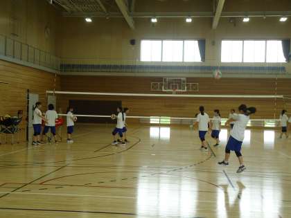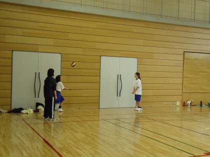 女子バレーボール部の様子です。顧問の先生から、レシーブの手ほどきを受けています。
