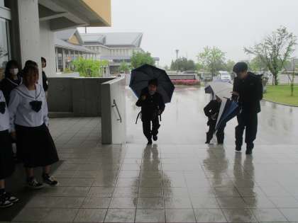 昨晩、寒冷前線の通過に伴い急激に気温が低下し、予報ではこのあと気温が上がらず寒い1日になりそうです。雨も降りしきる中、八中生は今日も元気に登校しています。