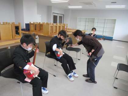 1年生が三味線の練習をしています。