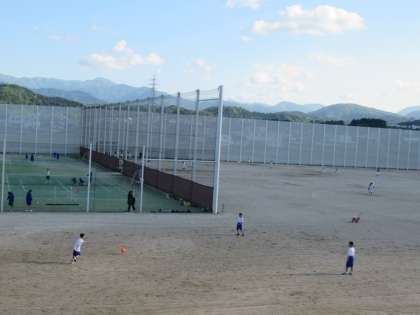 グラウンドでは、野球部、サッカー部、陸上競技部が気持ちよさそうに活動しています。