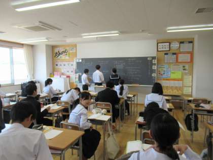 写真中・下は、数学の授業の様子です。積極的に黒板に書きに行く生徒もいます。