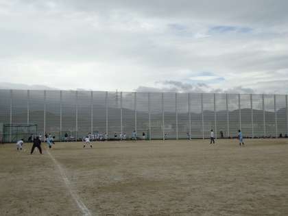 高岡市のチームと対戦しています。堅い守りで相手チームの攻撃を防ぎ、両チームの攻防が続いています。