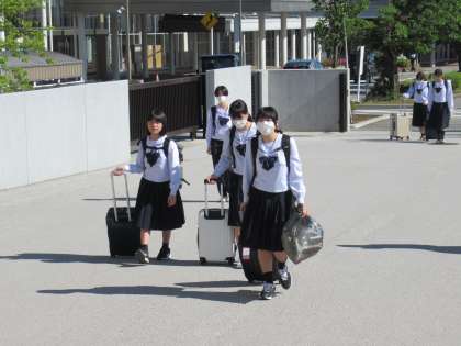 5月14日(火) さわやかな朝 その2 公開日 2024/05/14 更新日 2024/05/14 八尾中学校のページ 修学旅行の荷物を持ちつつも、生徒会企画の団別対抗アルミ缶回収に向けて、大きなアルミ缶の入った袋を持参する生徒もいます。協力ありがとう!