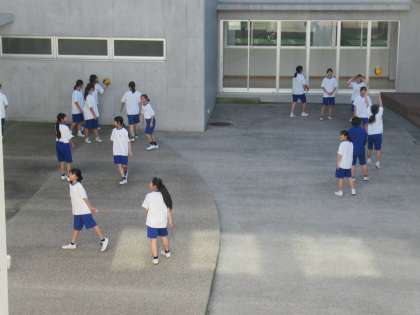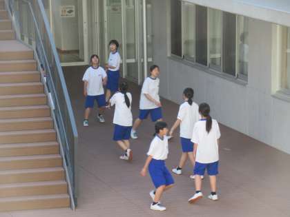中庭は、バレーボール部の練習場として定着しつつありますね。
