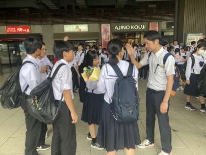 担任の先生にいってきますの挨拶をして、班別学習に出発です!