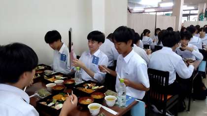 3、4組の昼食の様子です。京都らしいメニューです、