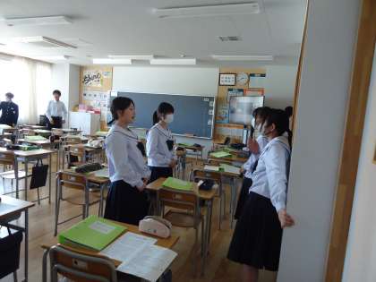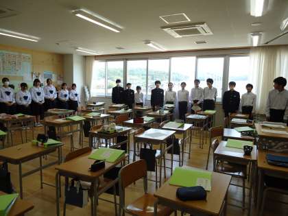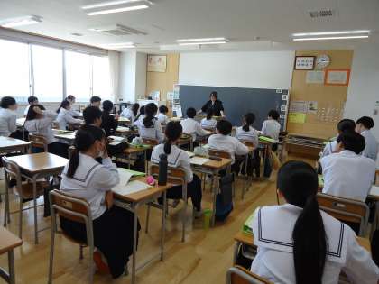 2年生は、総合的な学習の時間で、「社会に学ぶ『14歳の挑戦』」に向けて、挨拶の練習や正しい敬語の使い方を学習しています。