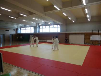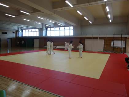 柔剣道場では、柔道部が気合いの入った練習をしています。