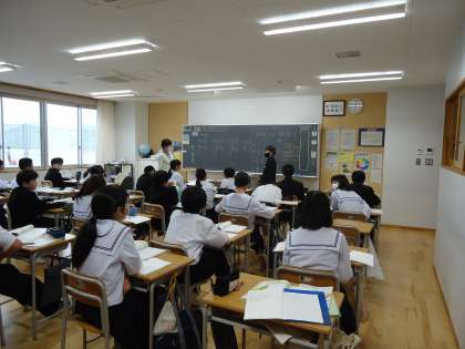 中学校での学習にも慣れてきました。先生への問いかけにも、自信をもって自分の考えを伝えています。