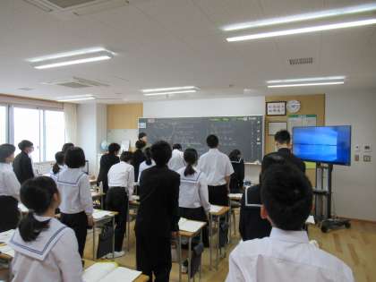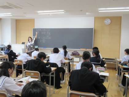 写真下は、数学の授業の様子です。正負の分数のわり算を学習しています。