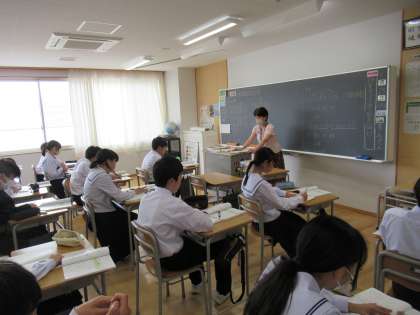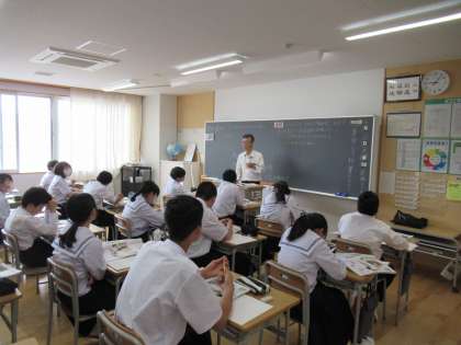 写真下は、社会の授業の様子です。いつ、どこで、どんな文明が起こったかについて学習しています。