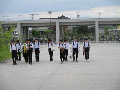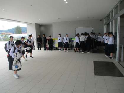 本日は、各学年の3班の生徒が担当して、生徒玄関で元気に挨拶を交わしていました。