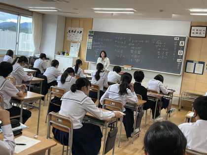 写真上は、数学の授業の様子です。「方程式の計算」について学習しています。
