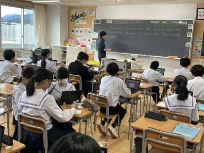 写真下は、英語の授業の様子です。英作文の演習を行っています。