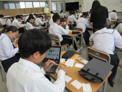「部活動の動き」をテーマに絵コンテづくりをしています。絵コンテが完成し、1枚1枚の用紙に描いています。