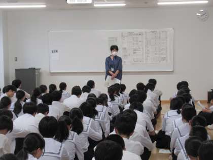 夏休みに、各高校で開催される「オープンハイスクール」についての集会を行い、進路指導主事が説明をしました。いよいよ進路について考えることが現実問題となってきましたね。