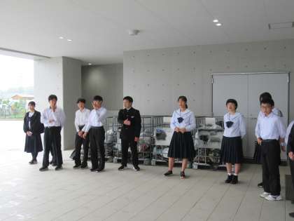 今朝のあいさつ運動は、各学年の1・2組6班が参加しています。