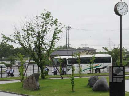 バスの運転手さんの計らいで、雨に濡れないようにと門の近くでバスを駐めてくださっています。こういう温かい想いを感じ取れる八中生であってほしいです。「ありがとうございます」の感謝の言葉を述べることができる八中生であってほしいです。