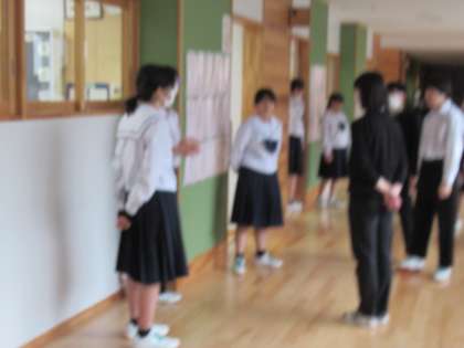 2年生は、毎朝の班長と担任とのミーティングを続けています。