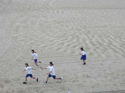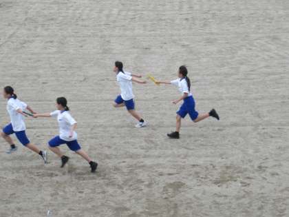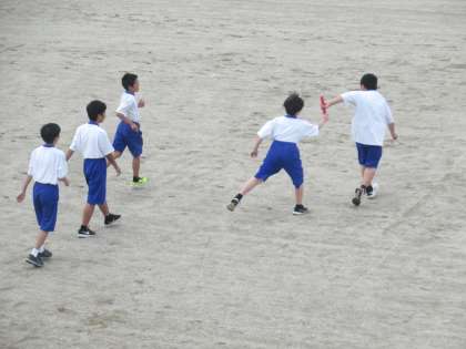 2年生は、リレーカーニバルに向けて、バトンパスの練習をしています。