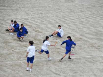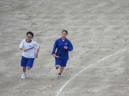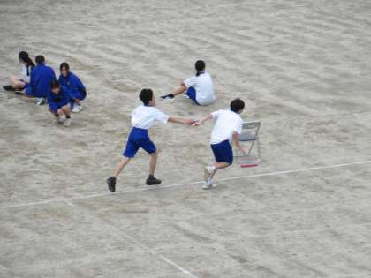 バトンパスの練習の成果は出たかな。リレーをしながら、バトンパスの練習をしています。