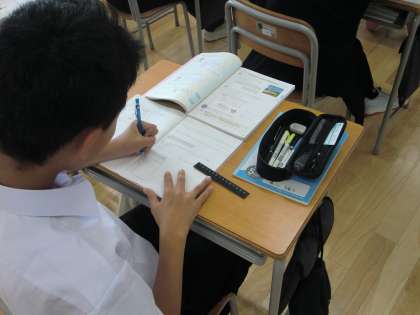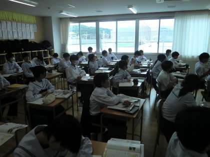 週の半ばです。1日の中で5教科全ての授業があるクラスもありますが、集中力を切らさず、真剣に学習に取り組んでいます。