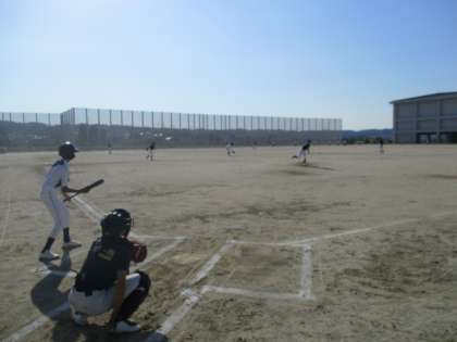 野球部は守備練習に励んでいます。