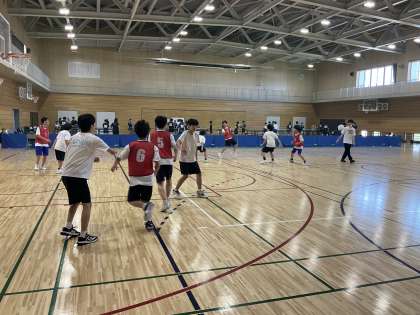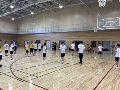 男子バスケットボール部は、外部指導者の先生から丁寧な指導を受けています。