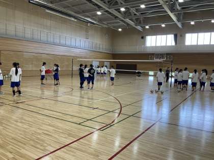 女子バドミントン部、女子バレーボール部が大会に向けて練習しています。シャトルを取る瞬時の動きや、レシーブの練習に集中して取り組んでいます。