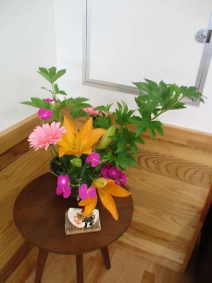 金曜日の部活動で、華道部が花を生けてくれました。華道部の講師の先生も校長室の花を生けてくださいました。